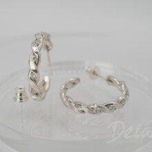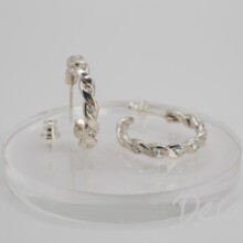 Každá náušnica je ručne vyrobená zo striebra a jej línia vedie oko po celom obvode. Do tohto tvaru je osadených sedem moissanitov s priemerom 2 mm, vybraných pre svoj čistý lesk a schopnosť reagovať na pohyb. Kamene sú vsadené tak, aby neprekrývali tvar, ale ho jemne zvýrazňovali – pri nosení sa ich odlesky menia s každým pohybom.
