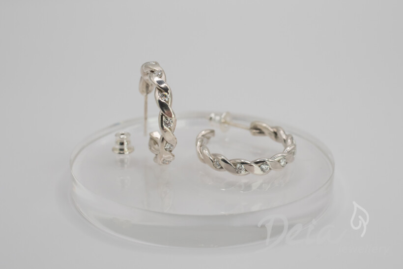 Myšlienka náušníc „Moissara Twist“ vznikla z jednoduchého pohybu – z jemného pootočenia kruhu v ruke, keď sa na jeho povrchu láme svetlo. Práve tento moment sa stal základom tvaru, ktorý si zachováva čistotu kruhu a jemnú dynamiku pohybu.