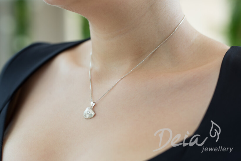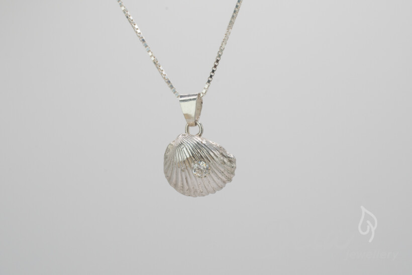 Prívesok „Lastúra“ zachytáva pokoj letného pobrežia v tvare striebornej mušle s jemnou iskrou moissanitu. Jeho línia nesie spomienku na leto — na šum mora, svetlo na hladine a chvíle, ktoré si chcete uchovať.