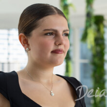 Prívesok je osadený moissanitom s priemerom 3 mm a je zavesený na jemnej striebornej retiazke zo striebra 925 s dĺžkou 35–40 cm.